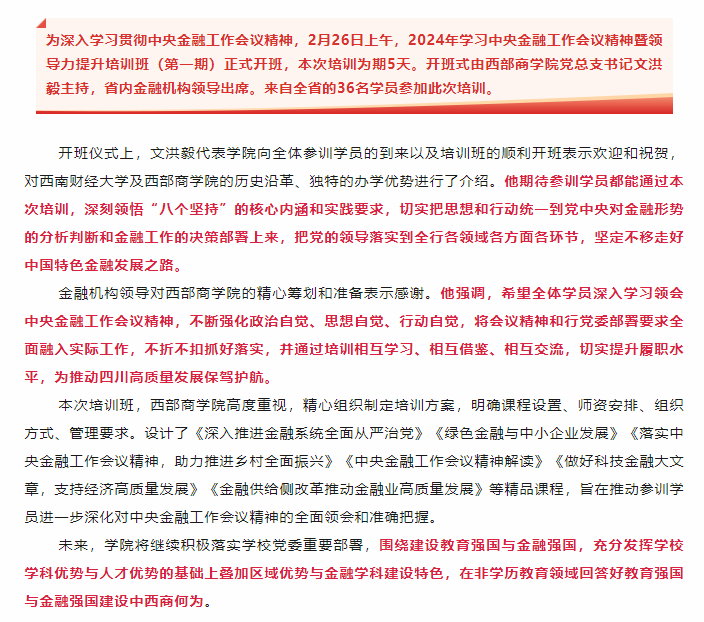 开年第一训︱2024年学习中央金融工作会议精神暨领导力提升培训班(第一期)顺利开班
