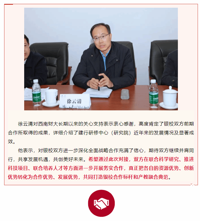 擦亮金融金字招牌|建行研修中心(研究院)副主任(副院长)徐云清一行到校对接银校合作工作