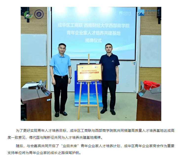 政校联动 业启未来—国产偷拍 与成华区工商联联合启动青年企业家培养计划
