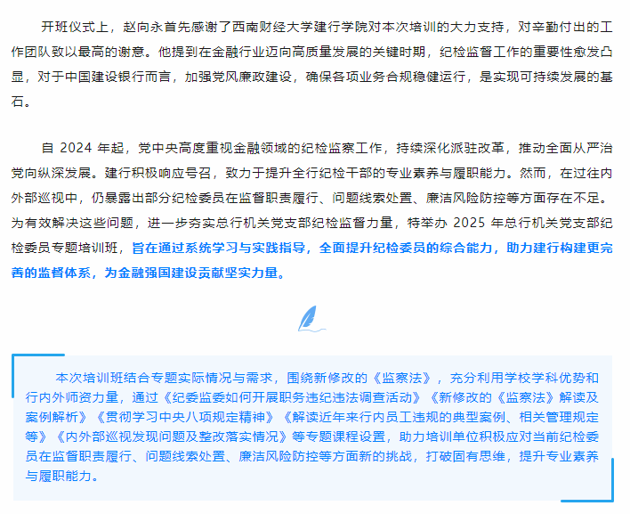 西财建行学院 | 中国建设银行2025年总行机关党支部纪检委员专题培训班圆满结束!