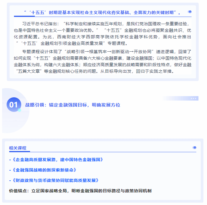 “十五五”金融规划引领金融业高质量发展专题课程