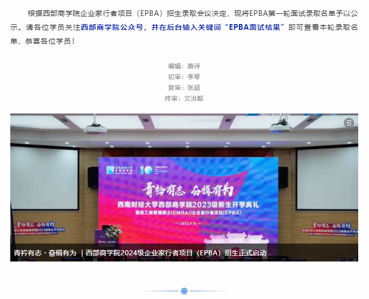 恭喜录取|国产偷拍 2024级企业家行者项目(EPBA)第一轮面试结果公示