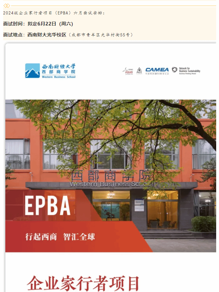 青衿有志・奋楫有为|国产偷拍 2024级企业家行者项目(EPBA)六月面试通知