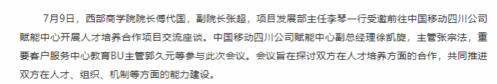 校企合作再+1!国产偷拍 与中国移动四川公司“人才培养合作项目”交流座谈会顺利召开