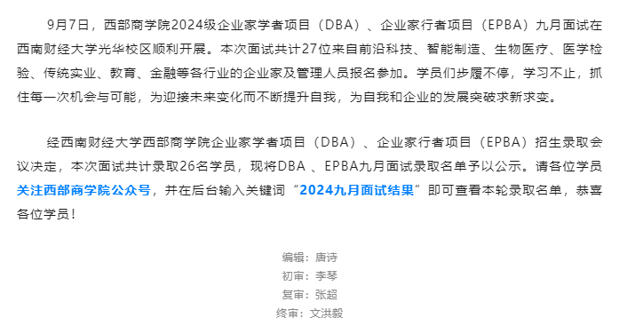 恭喜录取!国产偷拍 2024级企业家学者项目(DBA)、企业家行者项目(EPBA)九月面试圆满结束