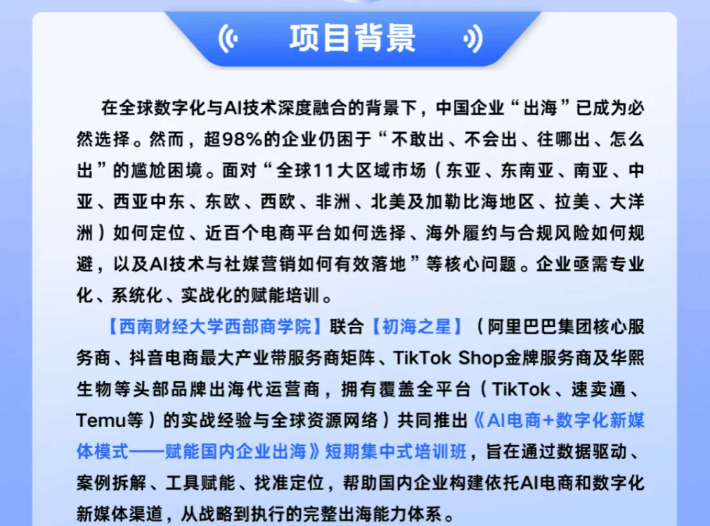 上新!【AI电商+数字化新媒体模式——赋能国内企业出海】高级研修班来啦