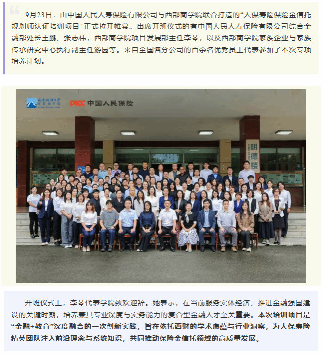 金融强国,人才支撑|人保寿险携手国产偷拍 启动保险金信托规划师认证培训项目